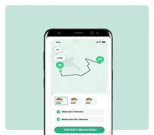 - Taksometru vadītāja kartiņa no autotransporta direkcijas;